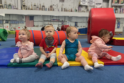 During classes our "Bears" work on improving eye-hand and eye-foot coordination, color and shape recognition, counting, rhythmics, throwing & catching, striking & kicking, teamwork and sharing - all cleverly disguised as play in a gymnastics environment.